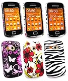 #2: Samsung S6500 Emartbuy ® Galaxy Mini 2 Bundle Pack De 3 Clip En Caso De Protección / Portada / Piel - Jardín Rosa, Zebra Negro / Blanco Y Rojo Flores Hawaianas
