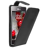 #4: Negro Funda de Cuero para LG Optimus L7 II (P710) - Flip Case Cover Con Tapa + 2 Protector de Pantalla