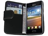 #6: Negra Cartera Funda de Cuero para LG E610 Optimus L5 - Flip Case Cover + 2 Protectores de Pantalla